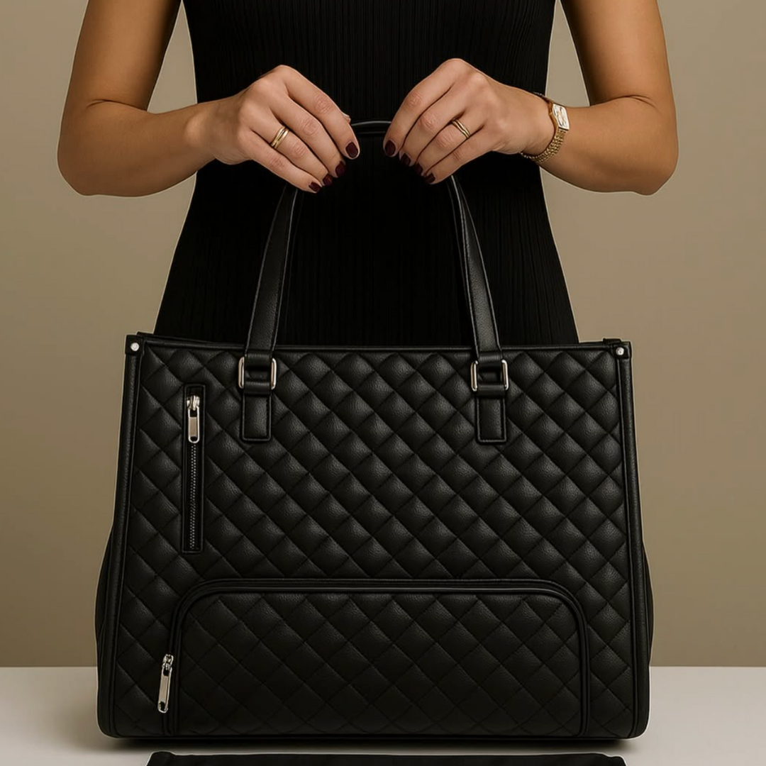 Most totes add pockets randomly. The Trinity is architecturally designed around how professional women actually move through their day.